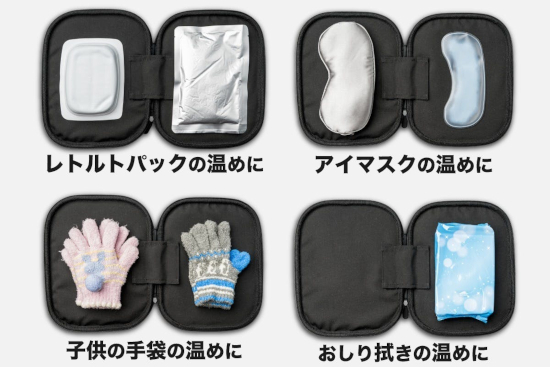 新製品は、独自開発の4層構造「ヒートコアテクノロジー」で効率的かつ安定した加熱を実現した、持ち運べるレンジだ。レトルト食品やパックご飯を、火も水も電子レンジも使わず、約3分で80度まで加熱できるという。