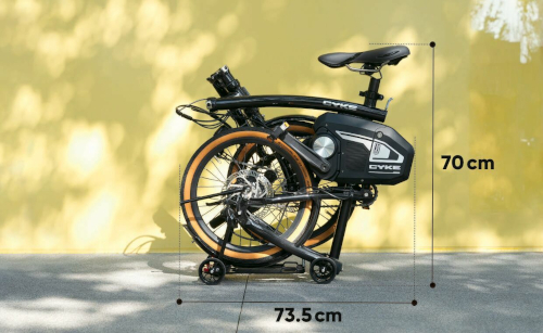 一般的な折りたたみ自転車と比較してよりコンパクトで、73×37×70cmのサイズに収納可能なトライフォールド構造によって、室内に保管しやすく、車載や電車での移動も容易で、オフィスにも持ち込める。