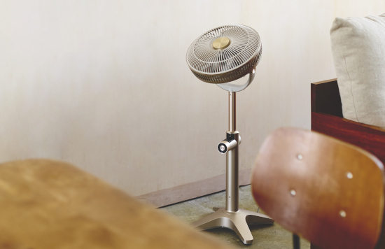 風量調整は無段階で、支柱中央のダイヤルから操作が可能なので、かがむことなく風量調整ができる。また、風量調整時に操作音が発生しないため、静かな環境でも操作音を気にすることなく使える。