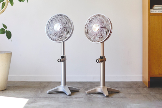 今回、発売される「Kamomefan+c lite2」は、サーキュレーター機能をより改善すべく、従来の左右自動首振りだけでなく上下自動首振りを備えることによって、3D首振りに対応した。また、電源オフ時にはファン部分がセンターに自動で戻るようにして、日常の佇まいにもこだわっている。