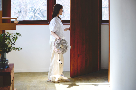 サーキュレーターシリーズである「Kamomefan+c」には、ナカシマプロペラとともに新開発した羽根「Nakashima Braid R-04」を搭載し、従来のリビング扇風機としてはもちろん、サーキュレーターとしても使用できる。