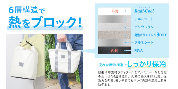 放射冷却素材「Radi-Cool(ラディクール)」採用の保冷バッグ