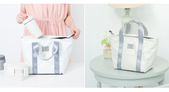 内部には、アルミシート・ポリウレタン・発泡ポリエチレンを組み合わせた多層構造を採用することによって高い保冷性能を実現し、ランチや飲み物、軽食などを安心して持ち運べる。