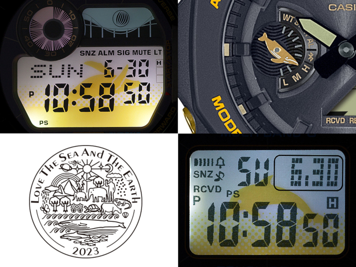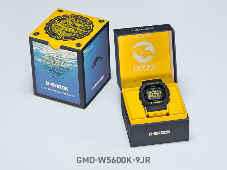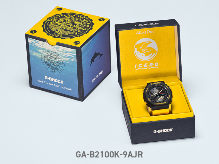 イルカ・クジラを配したバイオマスプラスチック採用・イエローバンドのG-SHOCK