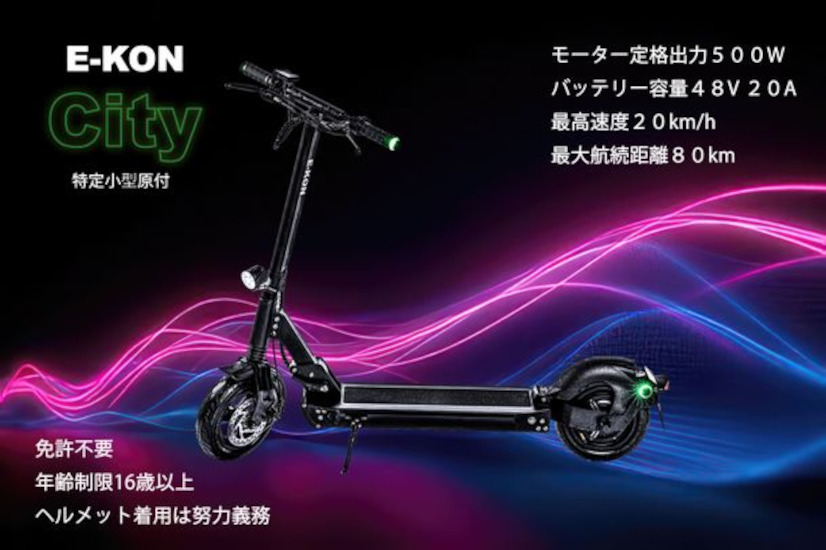 道交法改正で運転免許不要! 新モデル「E-KON City」の予約販売を開始