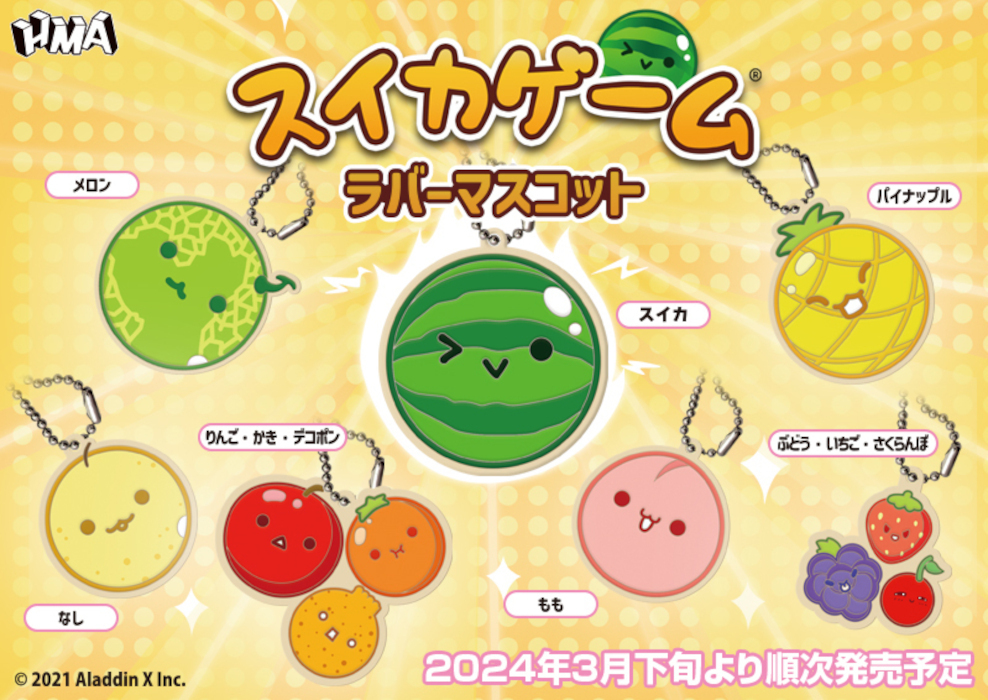 「スイカゲーム」公式のラバーマスコットとアクリルキーホルダーが今春登場!