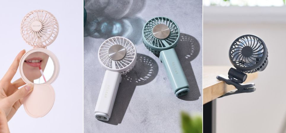 エレコム、身だしなみをチェックできる「ミラー付き」や「冷却プレート」「クリップ付き」の3タイプから選べる「小型ファン」