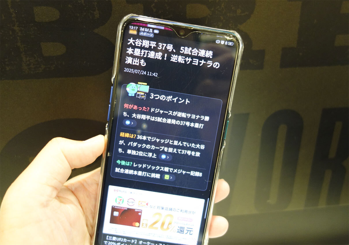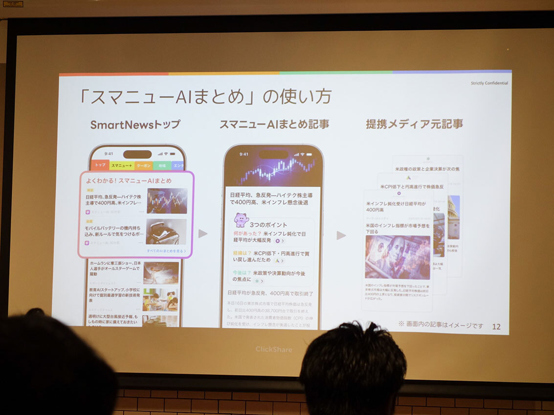 スマートニュース、生成AIで複数の記事を要約する「スマニューAIまとめ」の提供を開始 2025/07/24 18:00 Tweet 1/4 トップに表示している「スマニューAIまとめ」 記事詳細ページ 注目の記事 【2025年版】夏休みは中部へGO! 40代が日帰りで楽しめる絶景&体験スポット 相模原市に完全プライベート1日1組限定の宿泊施設が誕生! 横浜市長選でも実施! 「ノジマセンキョ割」で1045円分ポイント還元 ソフトバンクからワイモバイルへの乗り換えが有料化 2025年8月20日から 外部リンク スマートニュース=https://www.smartnews.com/ja