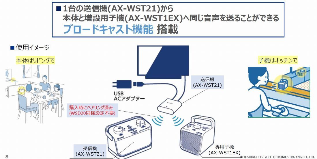 敬老の日のプレゼントにおすすめ!音声がくっきり聴こえて子機を増設できるテレビ用スピーカーを東芝エルイートレーディングが発売 2025/09/01 17:30 Tweet 1/7 東芝エルイートレーディングのテレビ用スピーカーAX-WST21と増設用子機のAX-WST1EX 記事詳細ページ 注目の記事 両親や祖父母へのギフトに最適かも? 音声をはっきり聴くことができるテレビ用ワイヤレススピーカーを東芝が発売 壁からも音が出るスピーカーでバスタイムに音楽を楽しもう! 東芝が伝振動のワイヤレススピーカーを発売 外部リンク 東芝ライフスタイルスピーカー商品ページ=https://www.toshiba-lifestyle.com/jp/pro_speaker/