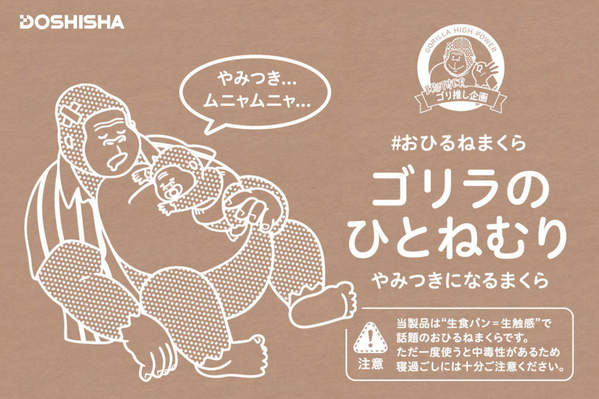 生食パンのような手触りの昼寝枕「ゴリラのひとねむり」、ドウシシャとアキレスが共同開発