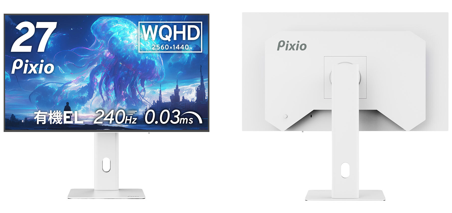 ホワイトカラーで完全ベゼルレス Pixioの有機EL採用 240Hz 27型ゲーミングモニター 2026/01/05 08:00 Tweet 1/3 Pixioの有機EL、ホワイト筐体採用ゲーミングモニター 記事詳細ページ 注目の記事 Logicool Gのゲーミングデバイスは普段使いでも快適 「勝利」も「仕事」も思い通り PRO X SUPERLIGHT 2cとG515 RAPID TKLを1カ月使ってみた レノボからポータブルゲーミングPC 最新2モデル アンダー10万円の「Legion Go S」なら気軽にPCゲームを楽しめそう 世界限定1337台 Razer 世界初のゲーミングマウスが最新技術で復刻 ゲーミング5部門新設! 注目ジャンルの年間No.1が明らかに 【BCN AWARD 2026 来年1月19日発表】 冬の作業やテレワークでも活躍 USB給電式ヒーター搭載のあったか手袋 サンコーの「ゲーミングてぽっか」 外部リンク PX277 OLEDMAX V2 White=https://pixiogaming.jp/products/px277oledmaxv2w
