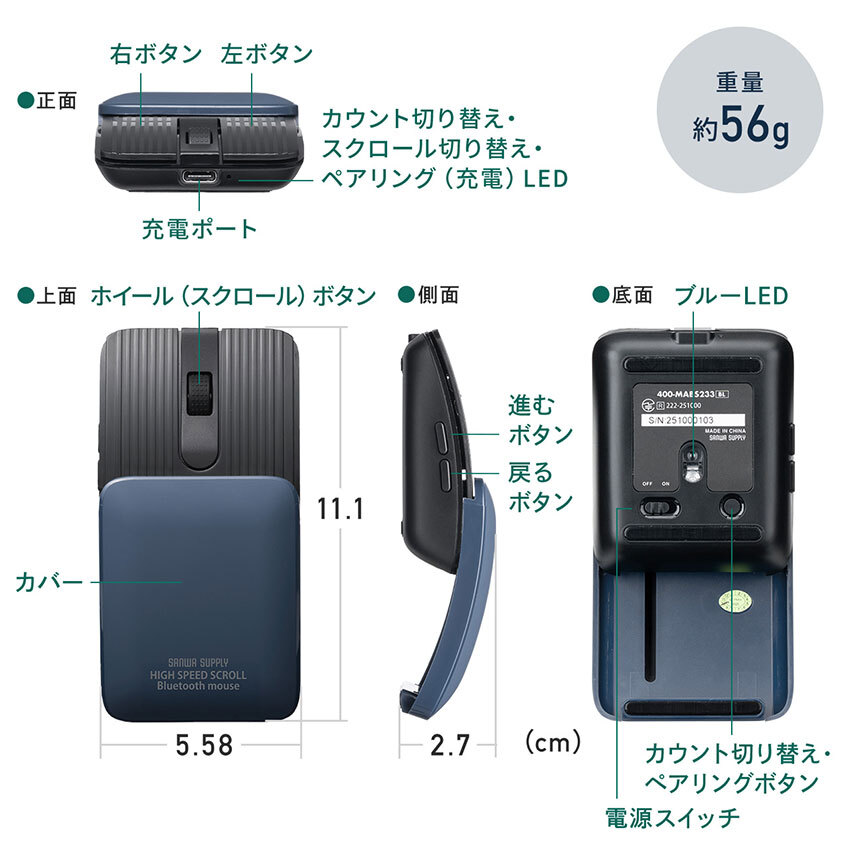 クレジットカードより小さい!? サンワサプライの折りたたみ式ワイヤレスマウス 作業に便利な機能も搭載 2026/02/02 07:00 Tweet 1/8 付属品と折りたたみ時のサイズ 記事詳細ページ 注目の記事 音質も侮れない 会議中でも着けっぱOK AI搭載オープンイヤーイヤホン viaim「OpenNote」なら業務もプライベートも捗る!? 無駄な個口を減らせて配線にも困らない 縦でも横でも挿せる電源タップ「コンセント革命タップ」 ケーブル・充電器・モバブ お出かけに必要なものがこれ一台に MOTTERUのコンセント一体型ACモバイルバッテリー 背面に好きな画像を表示 推し活捗るエレコムのiPhone 16、17対応スマホケース フラッグシップモデル譲りの音質 ソニー初のイヤーカフ型ワイヤレスイヤホン 気になる音漏れも低減できる 外部リンク 400-MABS233BK=https://direct.sanwa.co.jp/ItemPage/400-MABS233BK 400-MABS233BL=https://direct.sanwa.co.jp/ItemPage/400-MABS233BL