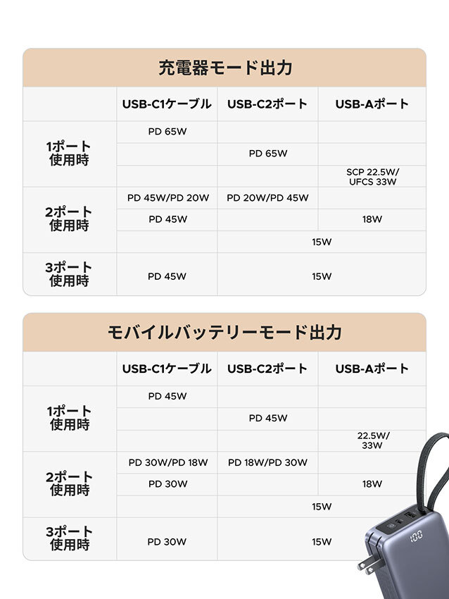充電器とモバブ、USB-Cケーブルが一つに UGREENの10000mAhモバイルバッテリー 2026/02/09 07:00 Tweet 1/3 UGREEN コンセント付きモバイルバッテリー 記事詳細ページ ※Amazonのアソシエイトとして、BCN+Rは適格販売により収入を得ています。 UGREEN コンセント付きモバイルバッテリー 10000mAh 65W 急速充電 【3役一体】 ACプラグ+USB-Cケーブル一体型 3ポート ノートPC(MacBook)充電対応 65W 充電器 モバイルバッテリー 45W 折畳式プラグ デジタル表示 コンパクト PSE認証済 iPhone17 Galaxy Android スマートフォン iPad Pro MacBook その他 PB512 ¥9,980 Amazonで見る 注目の記事 スマホなのに「しっかり撮れる」を実現 撮影も楽しくなる スマホグリップPGYTECH「MagCam 2」なら便利機能も使える 独自のAI機能で対面と変わらない通話環境に! ロジクールの有線ヘッドセット「Zone Wired 2」 【初心者必見】値上がり前に買っておきたいノートPC ベテラン販売員のオススメ4選 選択のポイントも解説 2台同時充電もOK 急速充電にも対応 エレコムの二股設計USB-Cケーブル 最大風速約31m/s 液晶付きで使いやすい PC内部の掃除にも使えるサンワサプライの電動エアダスター 外部リンク UGREEN=https://ugreen.jp/