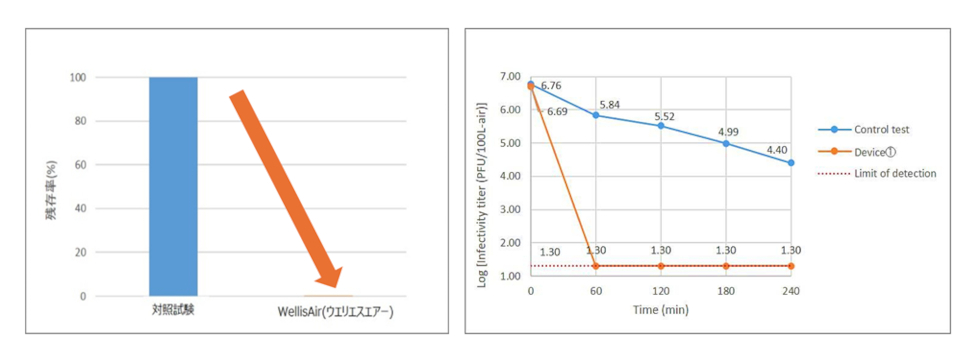 空気除菌清浄機「ウエリスエアー」、A型インフルエンザウイルス感染価の低減効果を確認