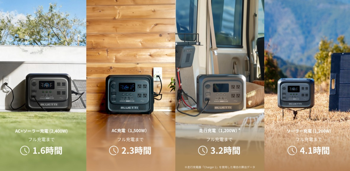 BLUETTIが3000Whクラスで世界最軽量のポータブル電源「AORA 300」を発売! 2026/03/10 18:30 Tweet 1/7 BLUETTIの新製品「AORA 300」 記事詳細ページ 注目の記事 ポータブル電源で最近よく見るBLUETTIってどんな会社? 実はいくつもの世界初を実現した会社です! BLUETTIのオルタネーター充電器Charger 2は車への充電も車からの充電も太陽光からの充電もできちゃう! BLUETTI史上最小・最軽量のミニポータブル電源「AORA 10」 外部リンク BLUETTIホームページ=https://www.bluetti.jp/ BLUETTI新生活応援セール=https://www.bluetti.jp/pages/bluetti-discount#thematic-email