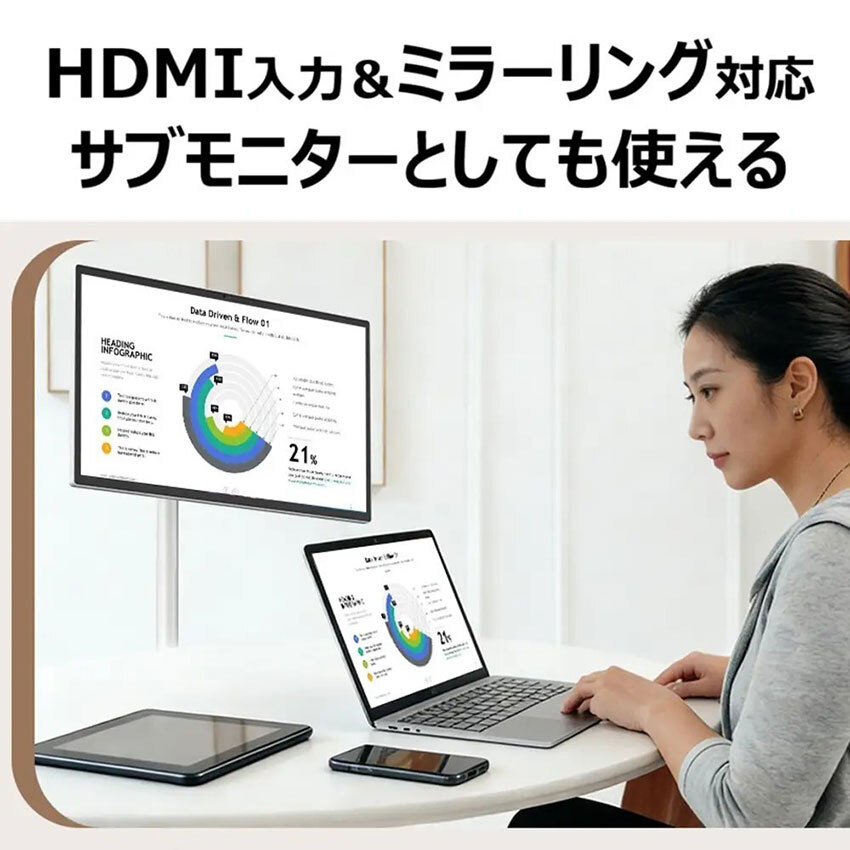 家中どこでも“巨大スマホ感覚”! キャスタースタンド付きで新しい生活スタイルを提案する27インチタッチ液晶タブレット 2026/03/11 15:00 Tweet 1/5 キャスタースタンド付きで屋内どこでも使えるタブレット 記事詳細ページ 注目の記事 格安Androidタブレットは買い? 帯に短しタスキに長し...かなあ 重量は500g切り ペンもキーボードも使えてなんでもこなせる「Xiaomi Pad 8シリーズ」 半透明な一体型PC ワコムのテクノロジー使ったノートPC レノボの「Yoga Gen 11」シリーズ一挙発表 AGMの防水タブレットがAmazon新生活セールで特価に! 人気モデル2機種がお得に買える 5G SA・HPUE対応タブレット「dtab d-51F」 2月26日発売 外部リンク KEIYO直販サイト=https://shop.keiyoeng.co.jp/items/137553918