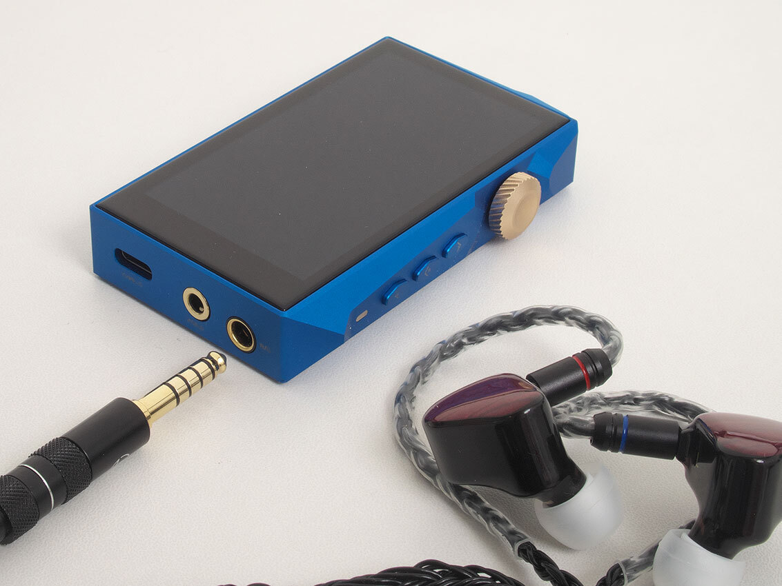 Hidizsの最新携帯オーディオ「AP80 PRO MAX」。筐体が前作より少し大きくなり、4.4mmジャックでイヤホンをバランス接続できるのが特徴だ。もちろん、3.5mmジャックも備え、普通のイヤホンも使える