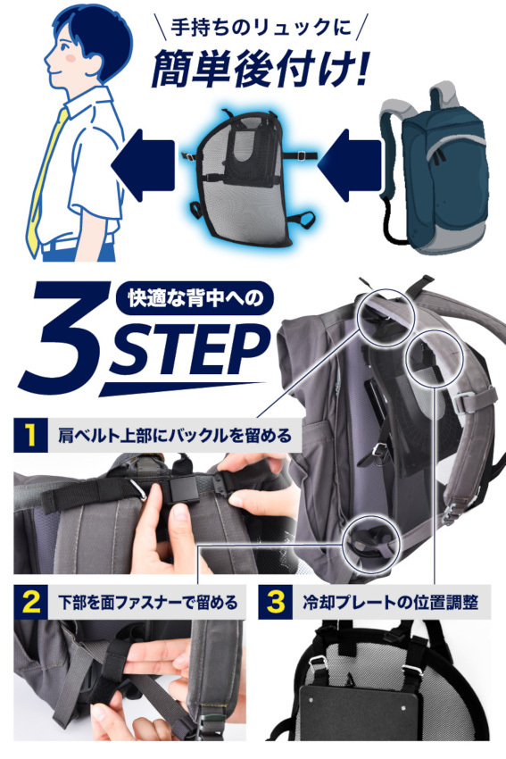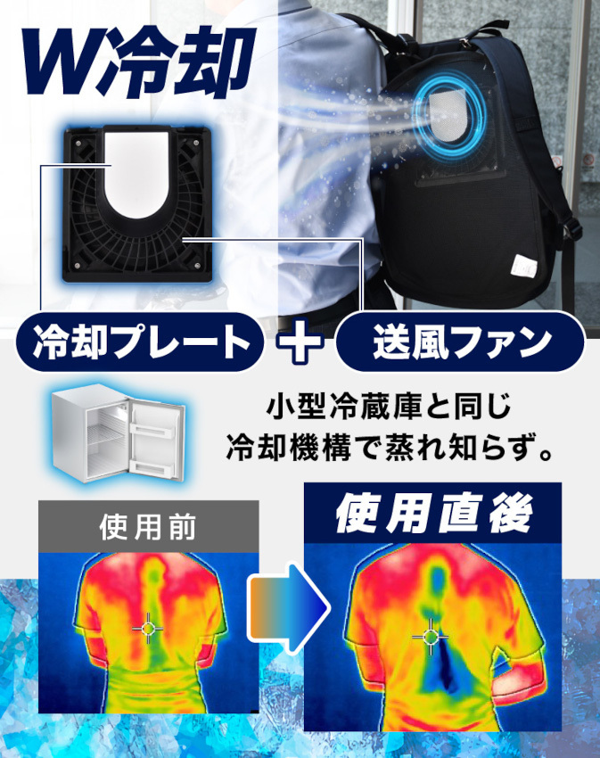 冷却プレートとファンのW効果でひんやり涼しい、サンコーの「ひんやりュック」