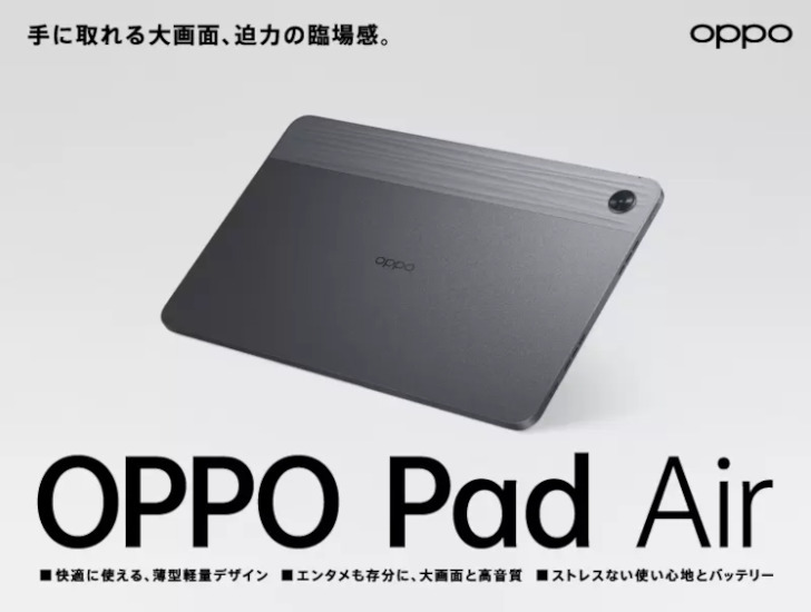 「398」のお手頃タブレット端末「OPPO Pad Air(128GB)」の販売開始