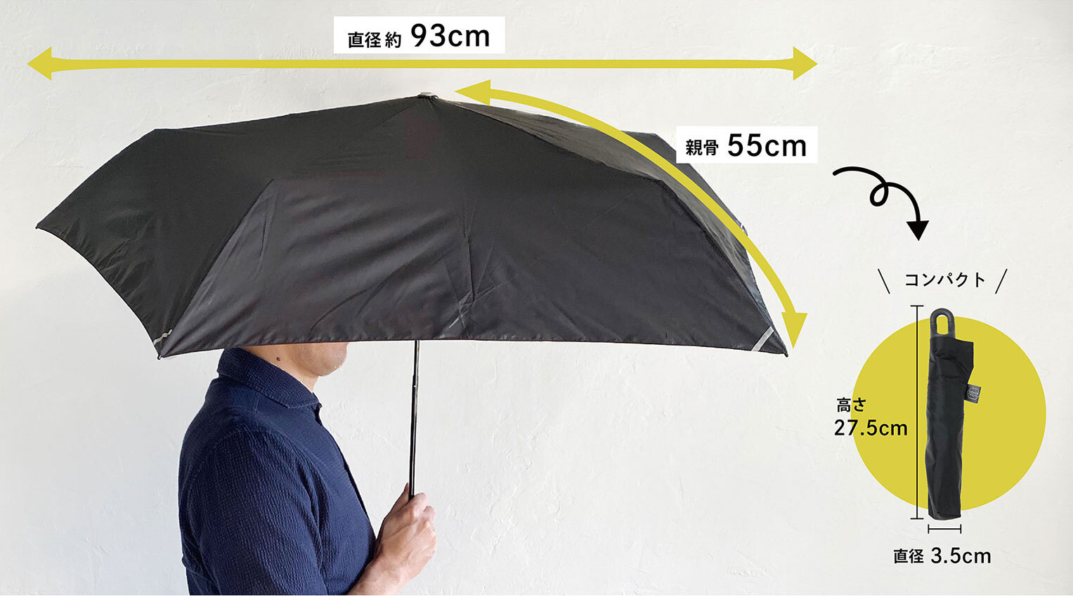 スマホより軽い約108gの雨晴兼用フック付き軽量折りたたみ傘