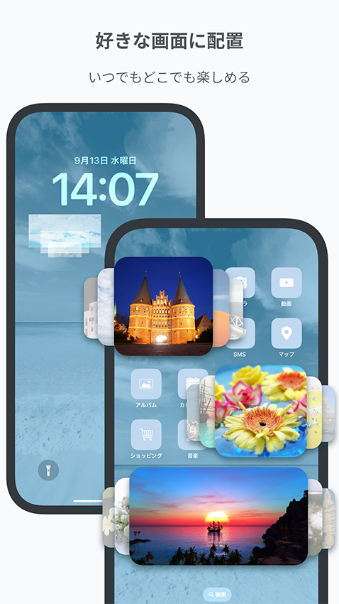 iPhoneのホーム画面にインタラクティブなスライドショーを作成・配置できるアプリ
