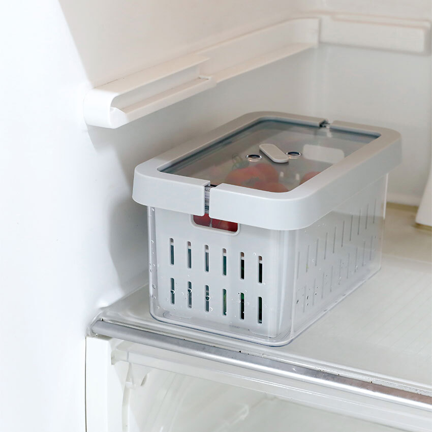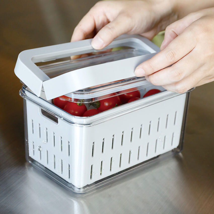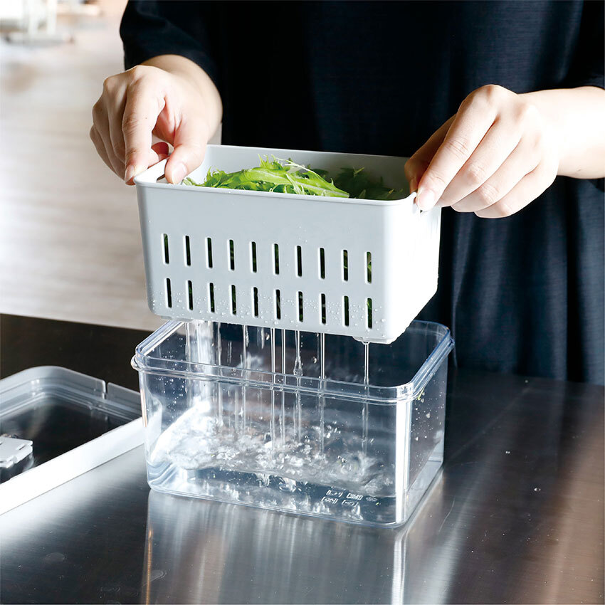 洗ってそのまま冷蔵庫に保存できる「野菜にやさしいザル付き保存容器」