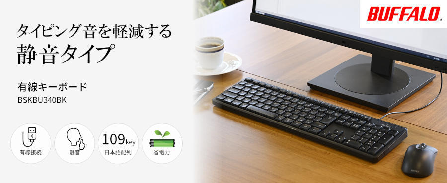 バッファロー、タイピング音を抑えた静音キーボード2機種を発売