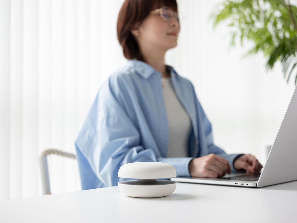 目にした動きを真似る人間の性質を利用 深呼吸を習慣化できる卓上デバイス