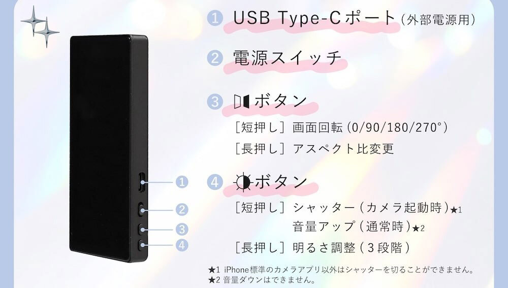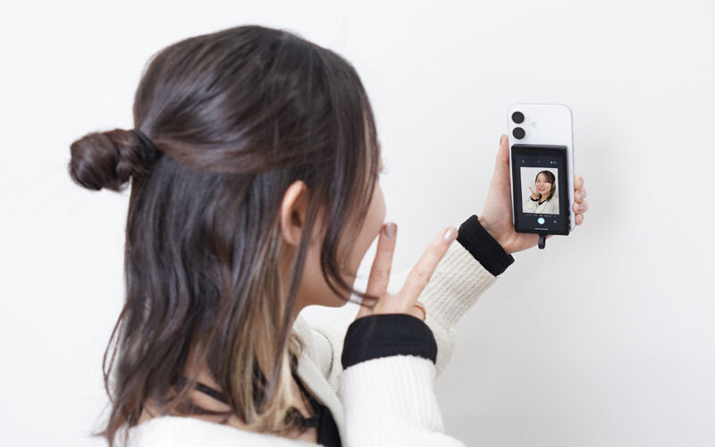 リアカメラでしっかり自撮りできる サンコーの「iPhone専用自撮りモニター」