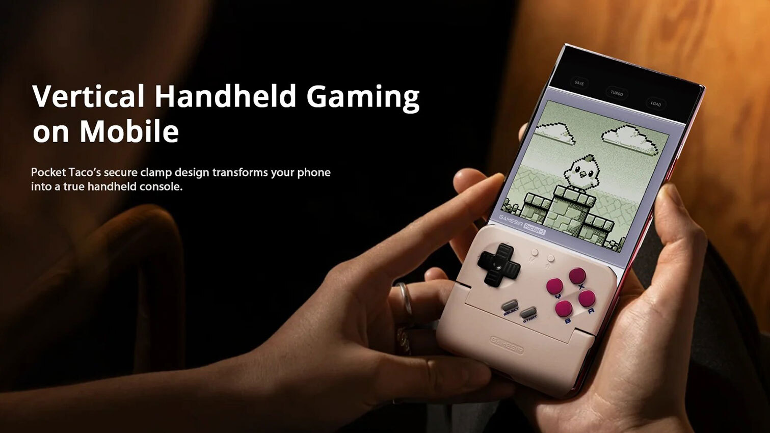 スマホがゲームボーイっぽくなる 縦画面のスマホゲームを快適に遊べるコントローラー「GameSir Pocket Taco」