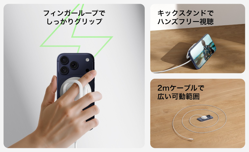 厚みは16mm スタンドにもリングにもなる Belkinの最大25Wマグネット充電器