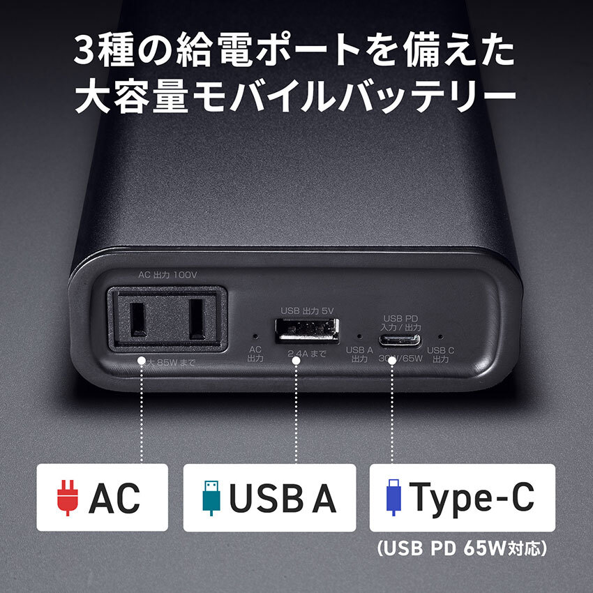 コンセントが付いてるモバイルバッテリー 容量は27500mAh サンワサプライから