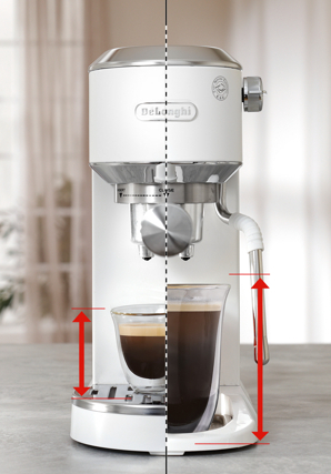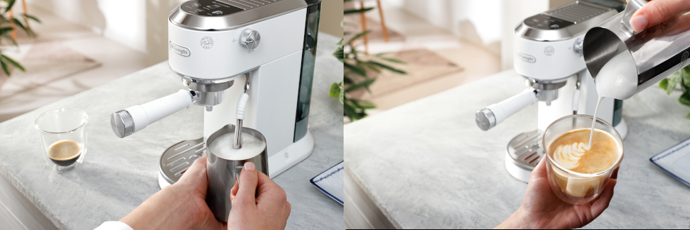 - 「デディカ デュオ」(ホワイト)=https://www.delonghi.com/ja-jp/p/dedica-duo-ec890j-wi-dedeika-deyuo-esupuretsuso%E3%83%BBkapuchi%E3%83%BCnome%E3%83%BCka%E3%83%BC-howaito/EC890J-WI.html?pid=0132106363