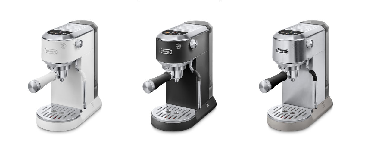 - 「デディカ デュオ」(メタルシルバー)=https://www.delonghi.com/ja-jp/p/dedica-duo-ec890j-m-dedeika-deyuo-esupuretsuso%E3%83%BBkapuchi%E3%83%BCnome%E3%83%BCka%E3%83%BC-metarushiruba%E3%83%BC/EC890J-M.html?pid=0132106365