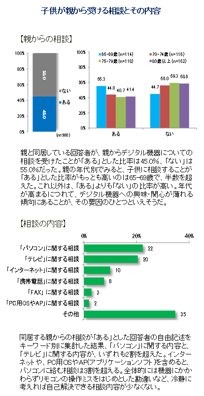 そこで本調査は、子供からみた親の生活行動や、デジタル機器の保有と利用状況、親が困った時の子供のサポートなどの行動を分析することを目的に調査しています。