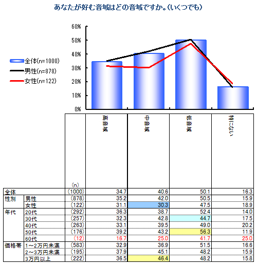 | 調査対象 | 20代~60代 3年以内に1万円以上のヘッドホン・イヤホンを購入した男女1000名 1000件 |