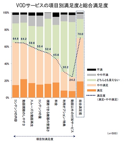 | 調査対象 | 1,000件 VODサービスの利用者500人、 VODサービスの非利用者かつ映像コンテンツ利用者 500人 |