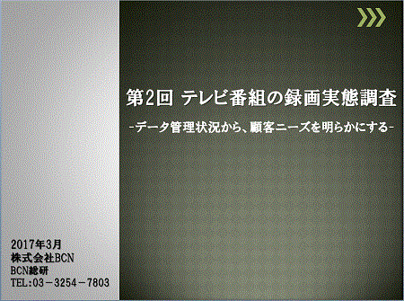 BCNでは、2017年3月に<テレビ番組の録画実態調査>を実施いたします。2016年3月に行った同調査との経年変化を追うとともに、視聴率(録画率)向上や保存機器の拡充がされるためには、どのような録画環境が求められているのかを探ります。