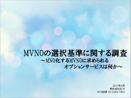 BCNでは、2017年4月に<MVNOの選択基準に関する調査>を実施いたします。近年契約プランやサービスが多様化している今、新規MVNO契約者が事業者を選定する決め手はどこにあったのかを探る調査を行います。