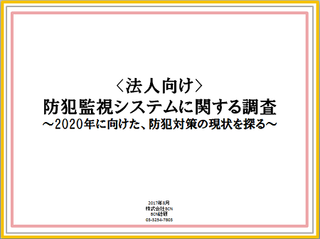 2020年に向けて、国をあげてテロや防犯対策が盛んに行われていることで、街中で防犯カメラ見かける機会も増えてきました。また、さまざまな業界でも、防犯に対する意識は向上し、防犯監視システムは注目を集めています。そこで本調査では、企業内個人の防犯カメラ導入関与者を対象に、導入重視点や導入予算、評価などを調査し、各企業で求められているものは何かを明らかにします。