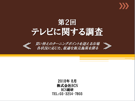 BCNは2018年8月に<テレビに関する調査>、<ワイヤレススピーカー調査>、<セキュリティソフト調査>を実施します。テレビに関する調査では、テレビ市場において、4K/8K放送開始、消費増税、東京オリンピックという大きなターニングポイントを迎えるなか、どのようなタイミングで、どのようなテレビを購入したいかを明らかにします。