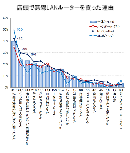 | 調査対象 | 無線LANルーター利用者 -購入者(3年以内) 1000件 -レンタル利用者 500件 |
