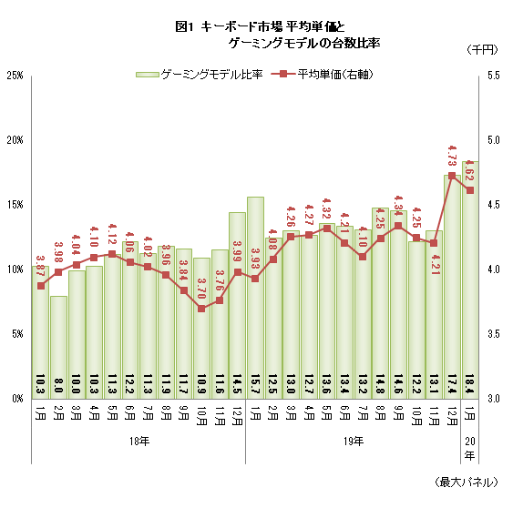 キーボードの平均単価が上昇、ゲーミングモデルの比率増が要因