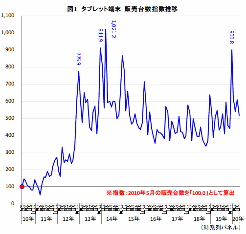 - ・タブレット端末 販売台数指数
