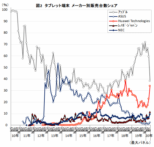 - ・タブレット端末 メーカー別販売数量シェア