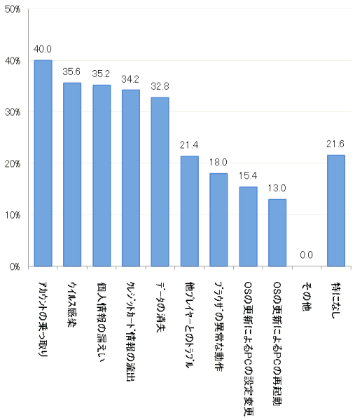 PCオンラインゲームプレーヤーの不安に思うこと、「乗っ取り」が4割で最多