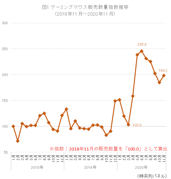 - ・ゲーミングマウス・ゲーミングキーボード 販売数量指数推移