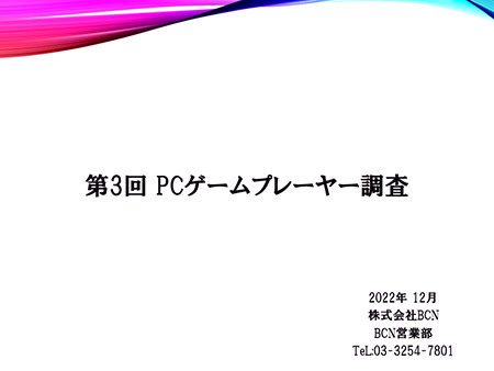 BCNは2022年12月に<第3回 PCゲームプレーヤー調査>を実施します。