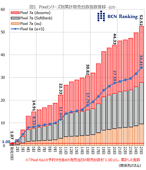 2023年5月11日発売のPixel 7aは久々にdocomoも取り扱ったことで、累計販売台数の初速は好調に推移している。家電量販店・ネットショップの実売データを集計する「BCNランキング」から明らかになった。