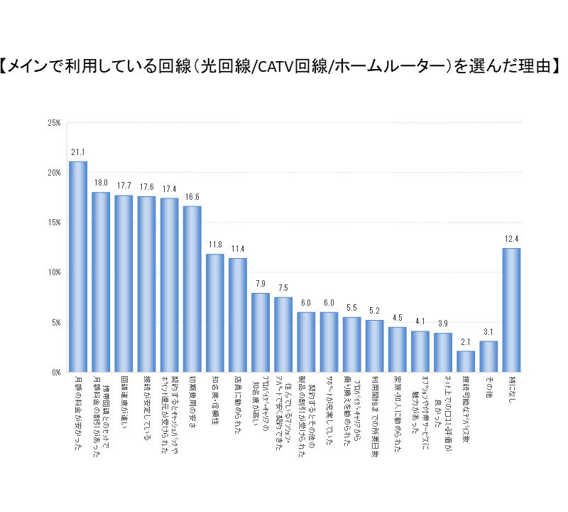 | 調査対象 | 1) 固定回線利用者 ・光もしくはCATV回線を利用し、契約プロバイダ名を認識 2) ホームルーター回線利用者 ・ホームルーターを利用し、携帯電話回線事業者名を認識 |